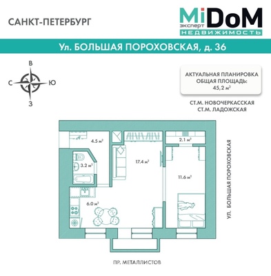 Светлую, уютную двухкомнатную квартиру площадью 45,2 м. с качественным ремонтом по адресу: Большая Пороховская улица,<strong> в Красногвардейском районе с развитой инфраструктурой. Доступен ОНЛАЙН ПОКАЗ по видеосвязи, а также отправим Вам видеоролик по запросу. ЗВОНИТЕ!</strong>