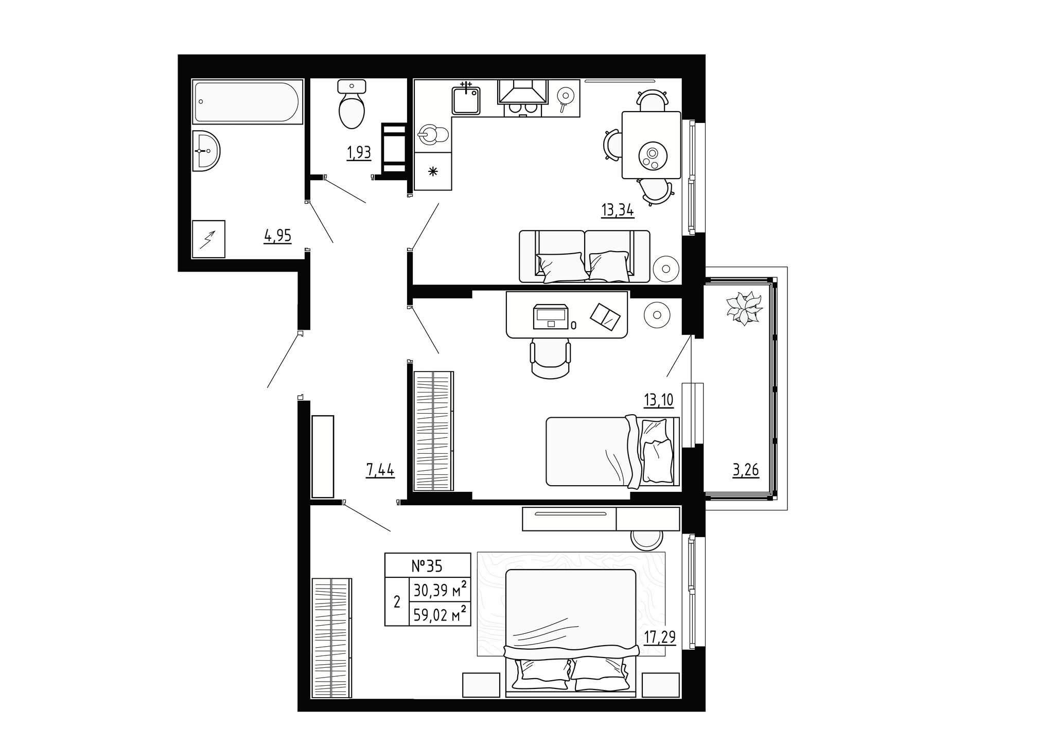 - Общая площадь 59.02 м²