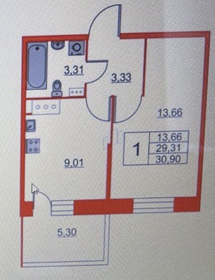 - Общая площадь 30.9 м²
