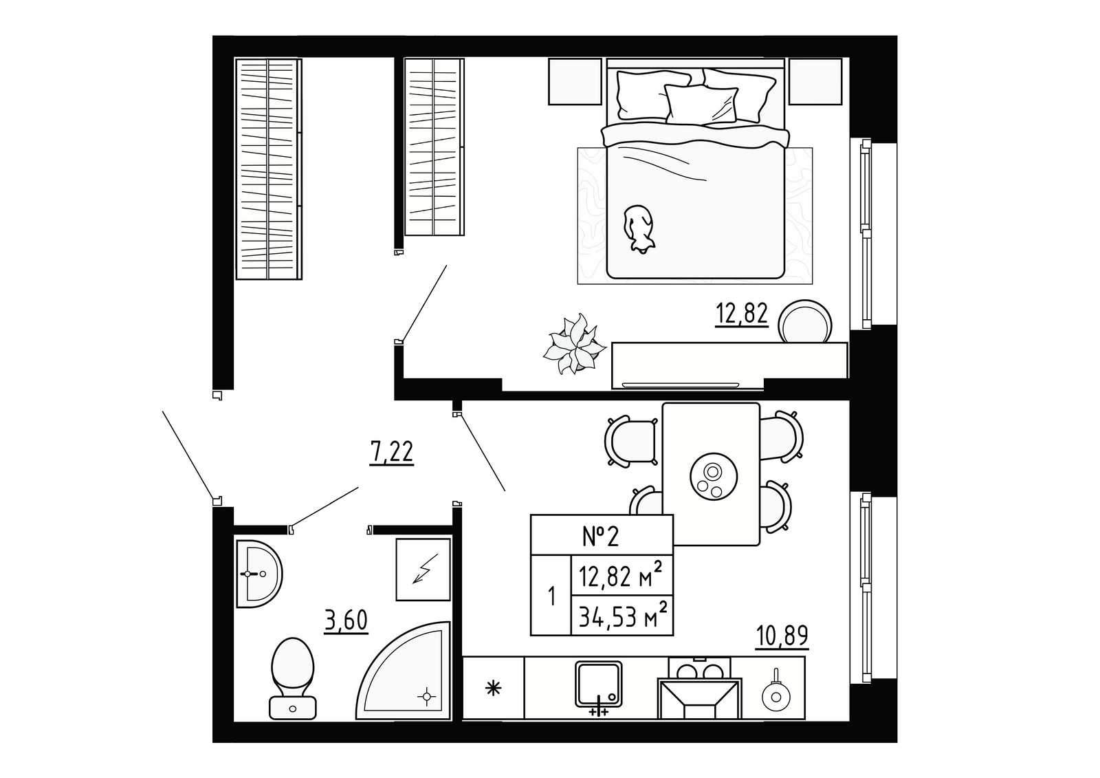 - Общая площадь 34.53 м²