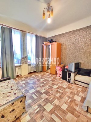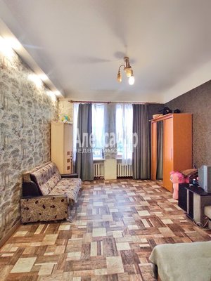 Просторная, с двумя высокими окнами, потолки 3 метра, сделан косметический ремонт, выделена кухонная зона, есть место хранения в комнате, и также отдельная кладовая.