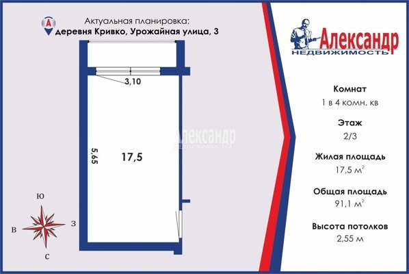 Квартира общей площадью 91,1 кв.м., планировка изолированная, раздельный санузел с ванной, просторная прихожая 12,2 кв.м., кухня 8,4. В комнате есть лоджия, окно - стеклопакет, натяжной потолок, покрытие стен - обои, пол - половая доска.