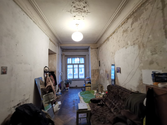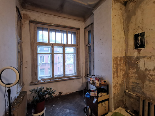 Комната уникальна - красивое энкерное окно с видом на Боровую улицу. Очень много света и пространства. Высокие потолки! Можно удобно и рационально организовать комнатное пространство - надстроить 2й этаж для отдыха.