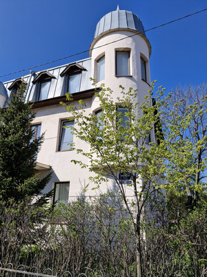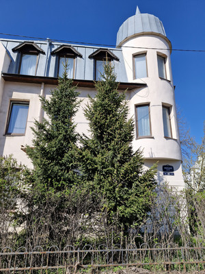 И ещё про особняк: общая его площадь 528.3 кв. м, всего 5 квартир. Архитектура особняка в стиле Модерн, архитектор неизвестен. Дом украшен эркером и двумя башнями, одну из которых венчает купол, напоминающий шлем русского богатыря...