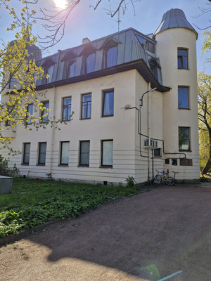 Арт. 104450169 БЕЗ ТОРГА.Комната площадью 29.7 кв. м генерала Ашехманова является ЛУЧШЕЙ комнатой в его особняке: она расположена на втором этаже из трёх, третий этаж (мансарду) занимала прислуга, подъем туда осуществлялся по винтовой лестнице в башне, пристроенной к дому (см. фото). Комнаты первого этажа являлись " доходными" и сдавались приезжим гостям Санкт-Петербурга. Для гостей и генеральской семьи парадный вход в особняк был и есть со стороны Морского проспекта.Комната имеет 2 окна с видом на зелёный сквер , а угловой эркер с тремя окнами и окно справа "смотрят" на Морской проспект Крестовского острова. Всего 6 окон в комнате.