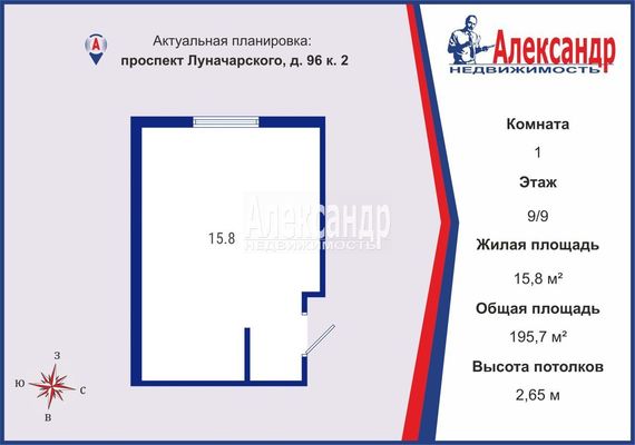 - Жилая площадь 15.8 м²