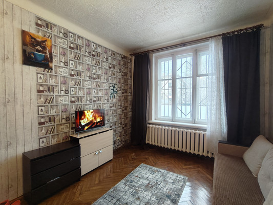 Арт. 126204484 Просторная комната 20м2 с большим окном и потолками 300 см в кирпичном сталинском доме! 2 станции метро в 10-15 минутах пешком. Высокий первый этаж.