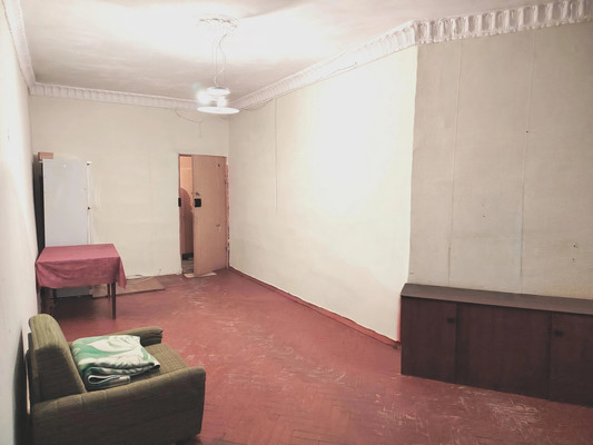 Комната в жилом состоянии, тёплая, чистая. Окно заменено на стеклопакет. Хороший вид из окна, много солнца и света. На полу крашеный паркет. Квадратура комнаты позволяет сделать зонирование или смонтировать второй этаж.